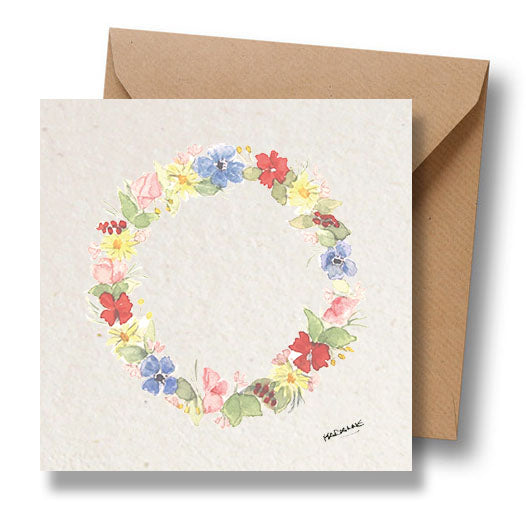 De kaart is gedrukt op gerecycled papier. Dit papier bestaat uit 40% papierafval, 55% hout en 5% hennepvezels. Het is FSC gecertificeerd. We kiezen ervoor om het papier niet te coaten, waardoor het zo puur mogelijk blijft en het een natuurlijke, open structuur heeft.