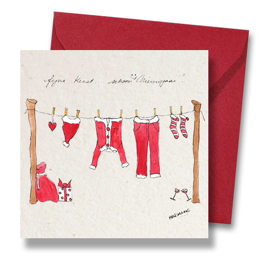 De kaart is gedrukt op gerecycled papier. Dit papier bestaat uit 40% papierafval, 55% hout en 5% hennepvezels. Het is FSC gecertificeerd. We kiezen ervoor om het papier niet te coaten, waardoor het zo puur mogelijk blijft en het een natuurlijke, open structuur heeft.