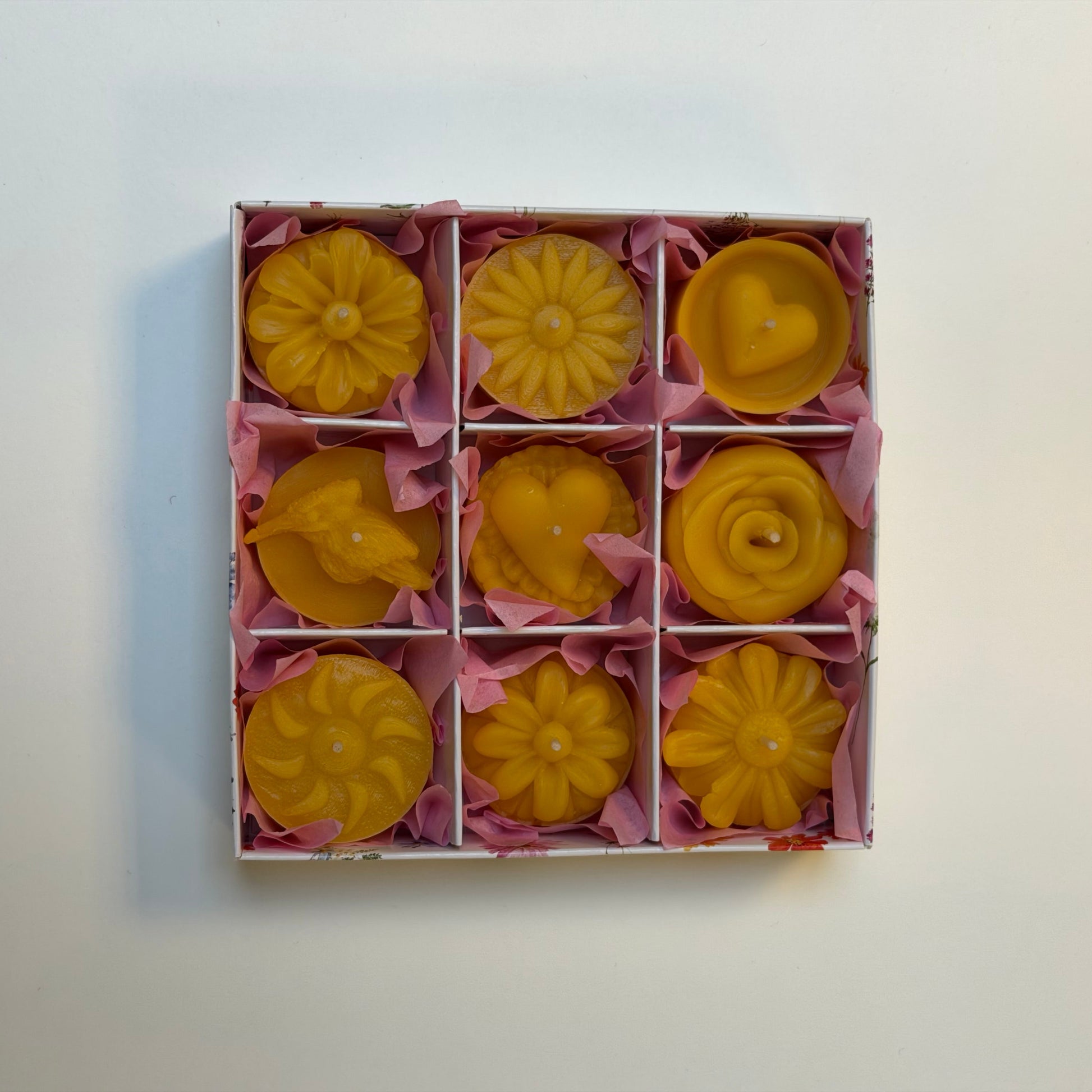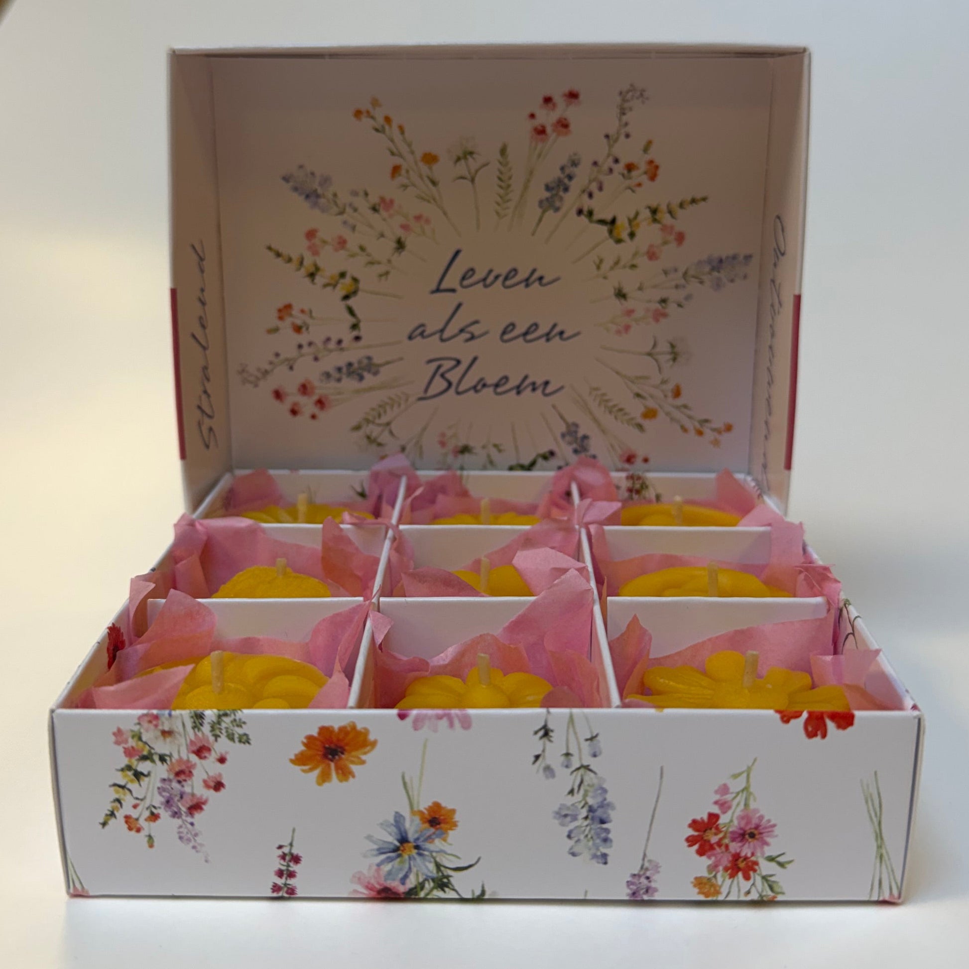 - 9 verschillende handgemaakte kaarsjes van 100% Bijenwas.
