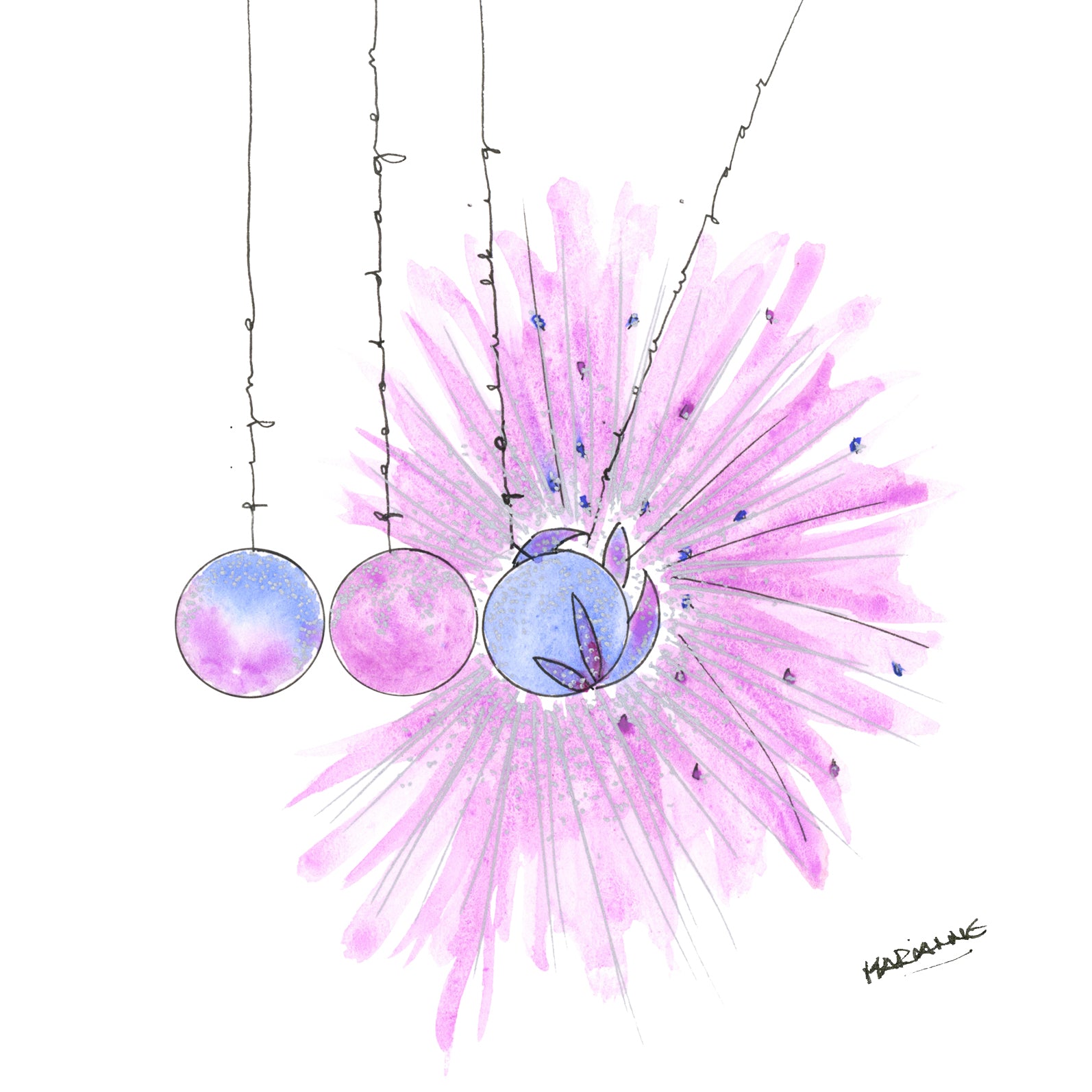 PATS! En daar ging weer een kerstbal. Hoe voorzichtig je er vroeger ook mee liep of hem in de boom wilde hangen. Elk jaar sneuvelde er wel eentje. Zonde, ondanks alle goede zorgen! Maar een PATS of KNAL kan ook iets realiseren en dat doet het ook. We maken er wat van! Het is een spetterend begin. En ook het gedeelde gevoel van verlies of "zonde" doet wonderen.