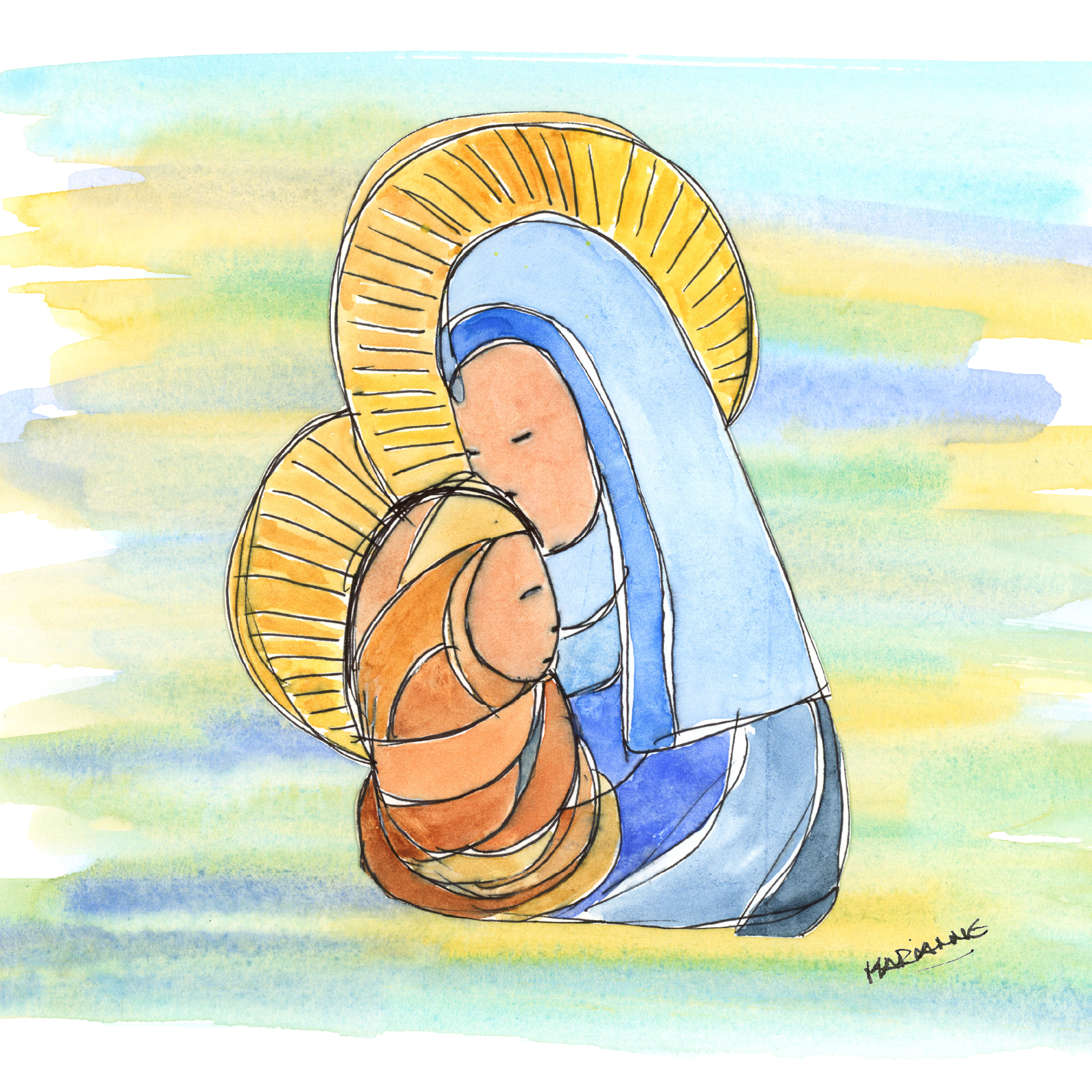 Maria en zoon, Moeder en kind, liefde, zorgzaamheid, koestering, warmte, veiligheid....we wensen dit eenieder toe: Onvoorwaardelijke liefde